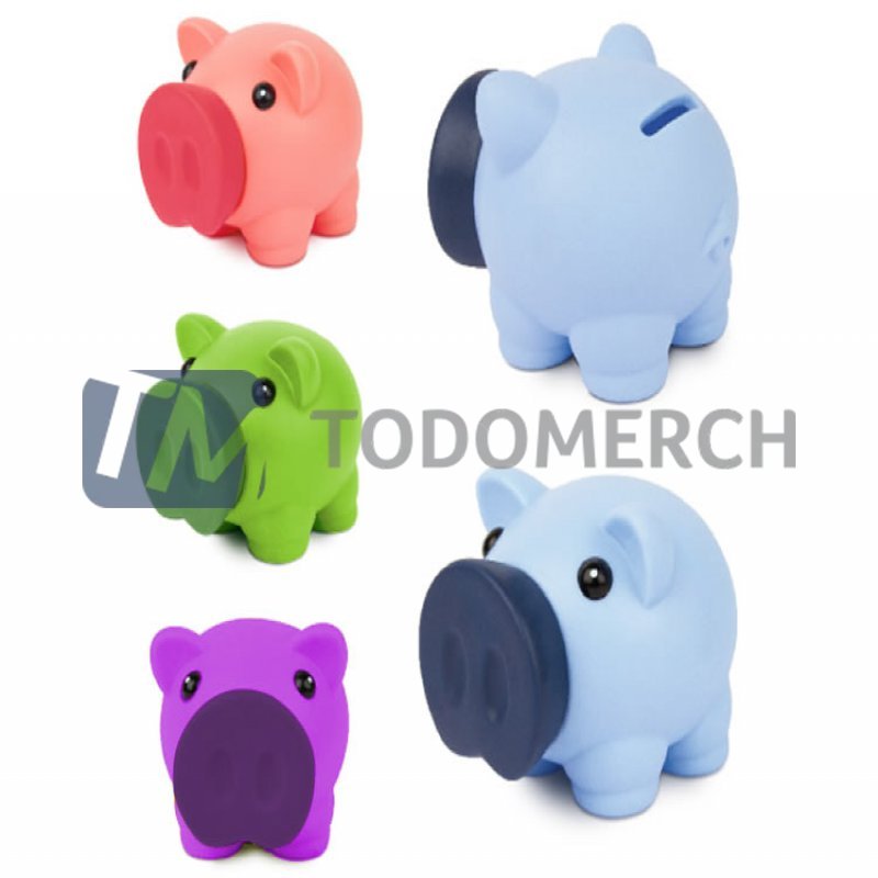 Medidas: Ancho: 8 cm. Alto: 7.6 cm. Largo: 10 cm. (Aprox.) Descripcion: Alcancía de PVC en forma de cerdito, nariz quitapon.