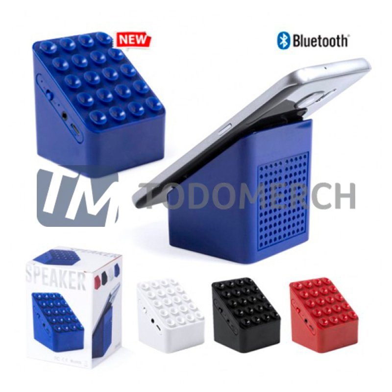 Original altavoz soporte para smartphone con conexión bluetooth, de diseño minimalista en vivos colores y ventosas de alto poder de sujeción. Con conexión bluetooth 3.0, ofrece 3W de potencia, entrada auxiliar de línea mediante conexión jack de 3,5mm y función manos libres. Incluye cable de carga mini USB, cable auxiliar jack de 3,5mm y viene presentado en atractiva caja de diseño. Con banda antideslizante en la base.Conexión Bluetooth. Potencia 3W. Recargable USB. Cable Incluido