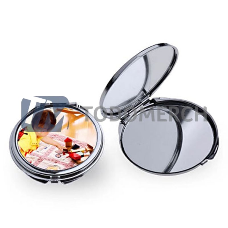 El espejo redondo sublimable es un novedoso producto de merchandising que permite personalizar mediante la técnica de sublimación cualquier imagen, texto o diseño en su superficie. Se trata de un espejo compacto y ligero, ideal para llevar en el bolso o en la mochila, y siempre tener a mano para retocar el maquillaje o el cabello.