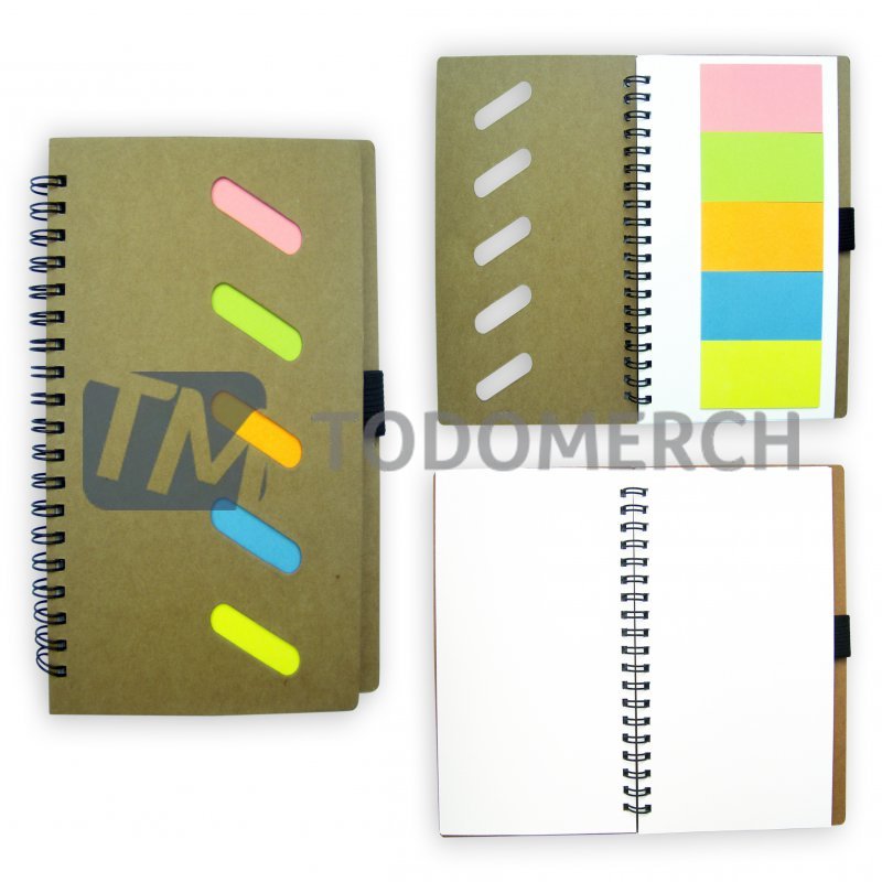 Medidas: 18 x 12.5 cm. Descripcion: Libreta ecologica que contiene 5 post it medianos de diferentes colores, 1 lapicero ecologico y 70 hojas blancas. Presentacion del producto: Individual, en bolsita plástica transparente.