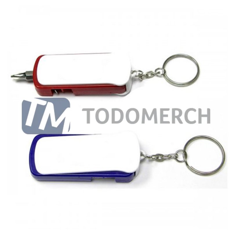 El llavero linterna con set de herramientas es un producto de merchandising ideal para todas aquellas personas que buscan una solución práctica y útil para el día a día. Se trata de un llavero compacto que incluye una pequeña linterna LED y un set de herramientas compuesto por un destornillador con diferentes cabezales intercambiables, una pinza y un abridor de botellas. Perfecto para tener siempre a mano en caso de emergencias o pequeñas reparaciones.