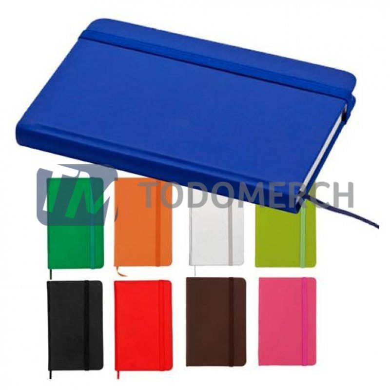 Medidas: 9 x 14cm (Aprox.) Descripcion: Libreta cubierta de poliuretano de 80 hojas de papel crema con línea, banda elástica, marcador de cinta. Presentacion del producto: Individual, en bolsita plástica transparente.