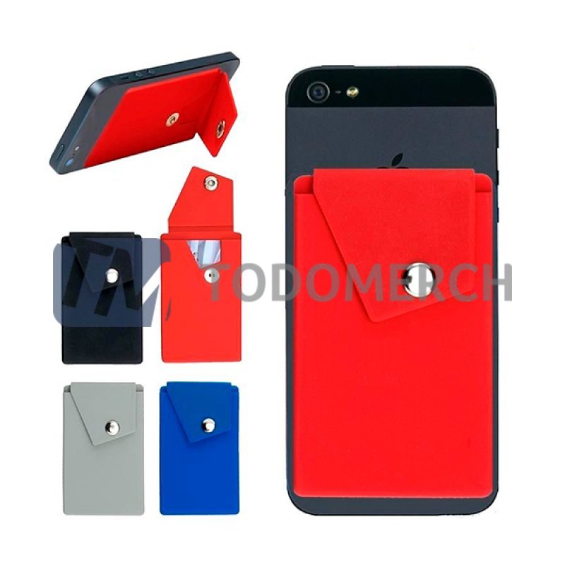 Funda soporte en suave silicona de llamativos colores y con bolsillo integrado. Cierre/soporte en solapa de botón. Silicona Adhesivo. Especificaciones Artículo 5,7 cm / 9,4 cm / 1 cm | 25 gr