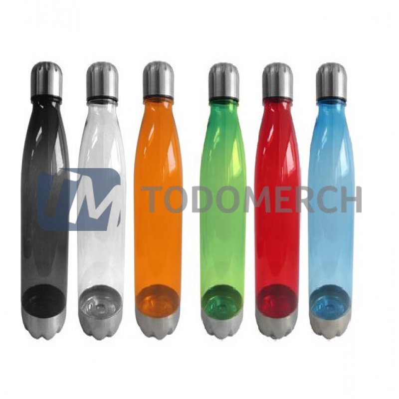 Medidas: Altura: 25.5 cm. Diámetro: 7 cm. (Aprox.) Descripcion: Tomatodo de plástico PC (Policarbonato) de colores traslíºcidos, y con la tapa y base de color metálico. Capacidad: 750 ml. (Aprox.)
