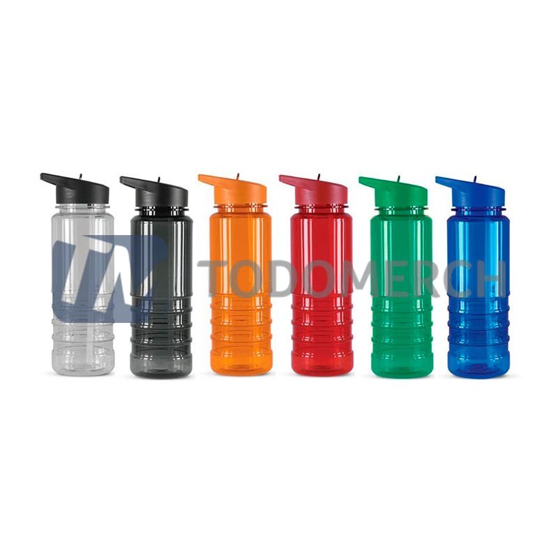 Medidas: Altura: 23.5 cm. Diámetro: 7.5 cm. Descripcion: Tomatodo plástico de cuerpo de color traslíºcido, con tapa asa de color solido y sorbete interior blanco. Para agua caliente y fría. Capacidad: 750 ml.